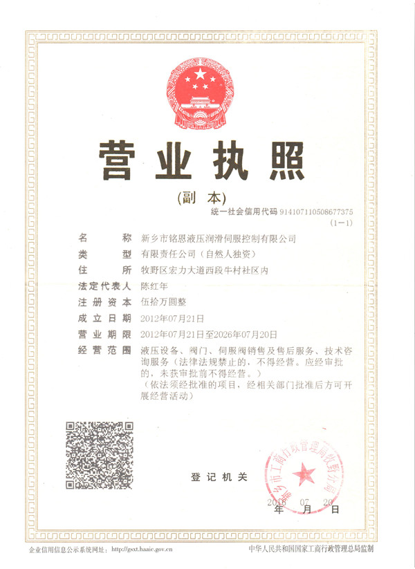 資質(zhì)榮譽/新鄉(xiāng)市銘恩液壓潤滑伺服控制有限公司